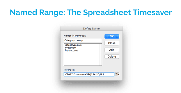As you can see from the two methods I have described above, using the named ranges feature is straightforward and can be done in the matter of a few clicks. This ease of use is worth the effort of updating your old spreadsheets to use them, as well as program your mind to think about name range strategies for upcoming report build outs. And if that isn’t enough of a selling point for the small amount of personal effort required, then consider the time you will save by not having to navigate sheets to figure out cell references, as well as the ability to decrease the likelihood of using the wrong cell range in a formula. Mind blowing, right!